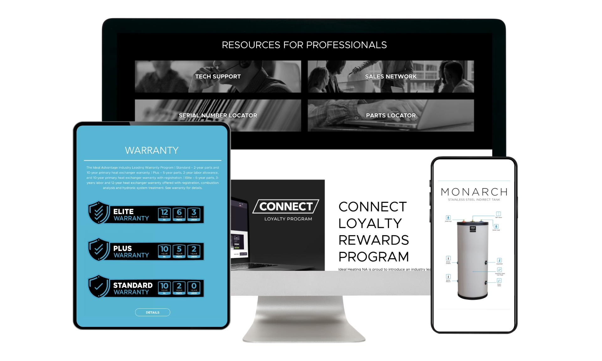 Ideal Heating NA, a leading manufacturer of high-efficiency boiler systems for North America, set out to strengthen relationships with distributors, contractors and engineers by developing a modern, intuitive and more resource-driven website. Their goal was to create a digital platform that not only showcased their evolving product line but also provided the technical information, documentation and support tools their professional audiences rely on every day.