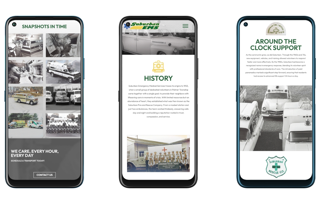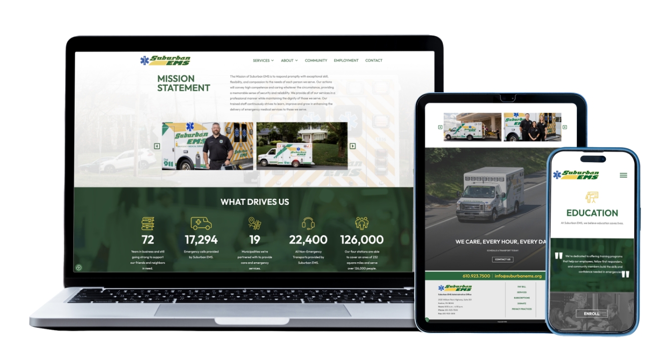 Suburban EMS, a trusted emergency medical service provider, recognized the need to modernize its digital presence to better support the communities it serves. With a mission centered around care, responsiveness and community connection, they sought a website that would reflect their values while making it easier for residents, recruits and donors to access critical information and resources.